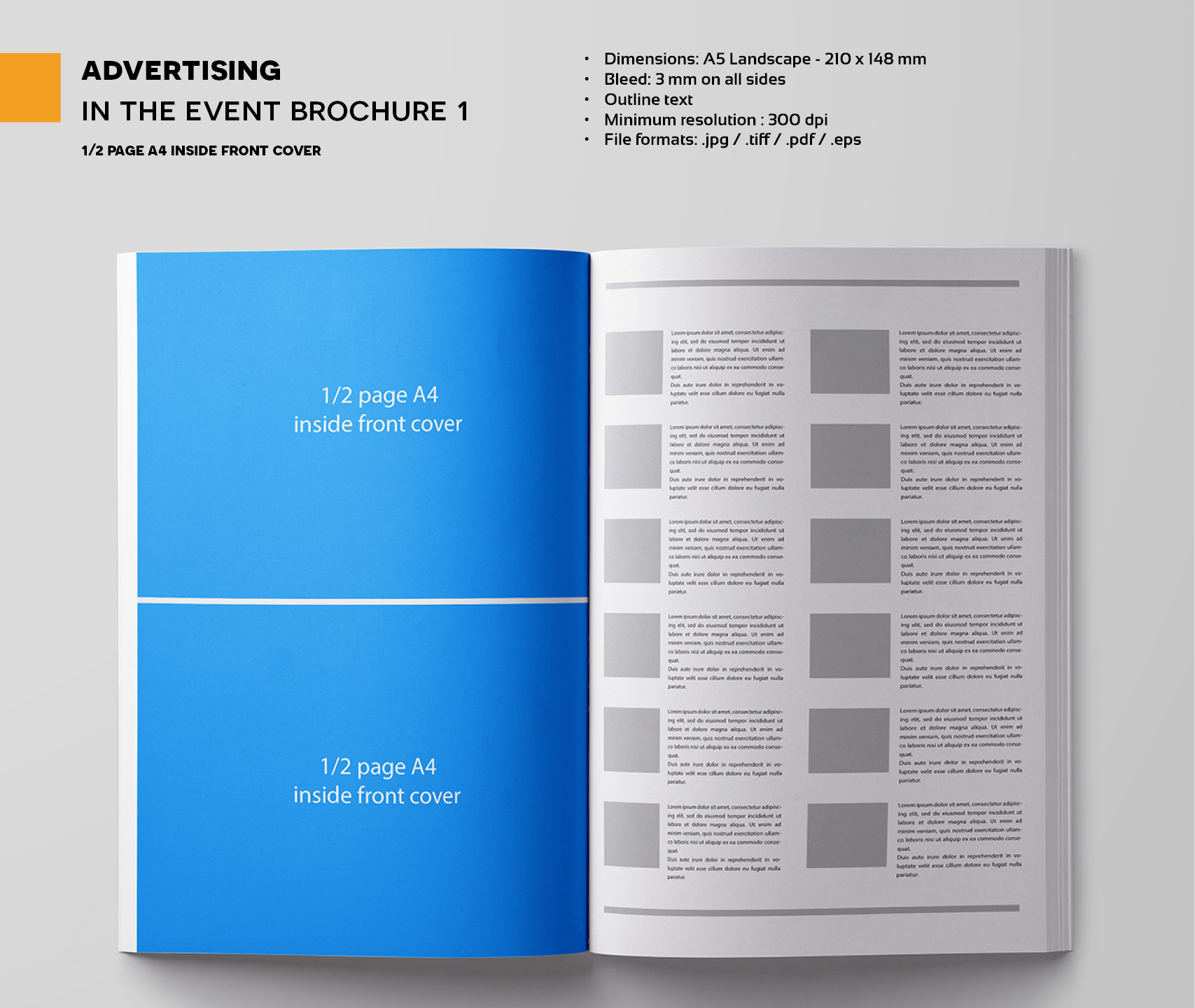 1/2 page A4 inside front cover (event brochure distributed to all participants)